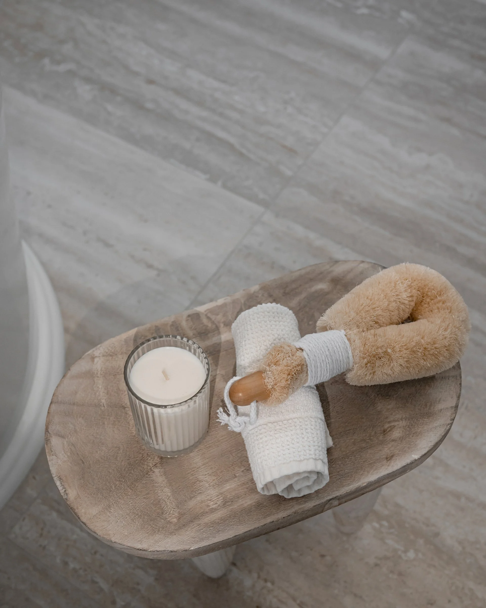 Yhdistele tekstiilejä, kuten pyyhkeitä ja mattoja, jotka sointuvat yhteen. Näin luot yhtenäisen ja viimeistellyn tunnelman.