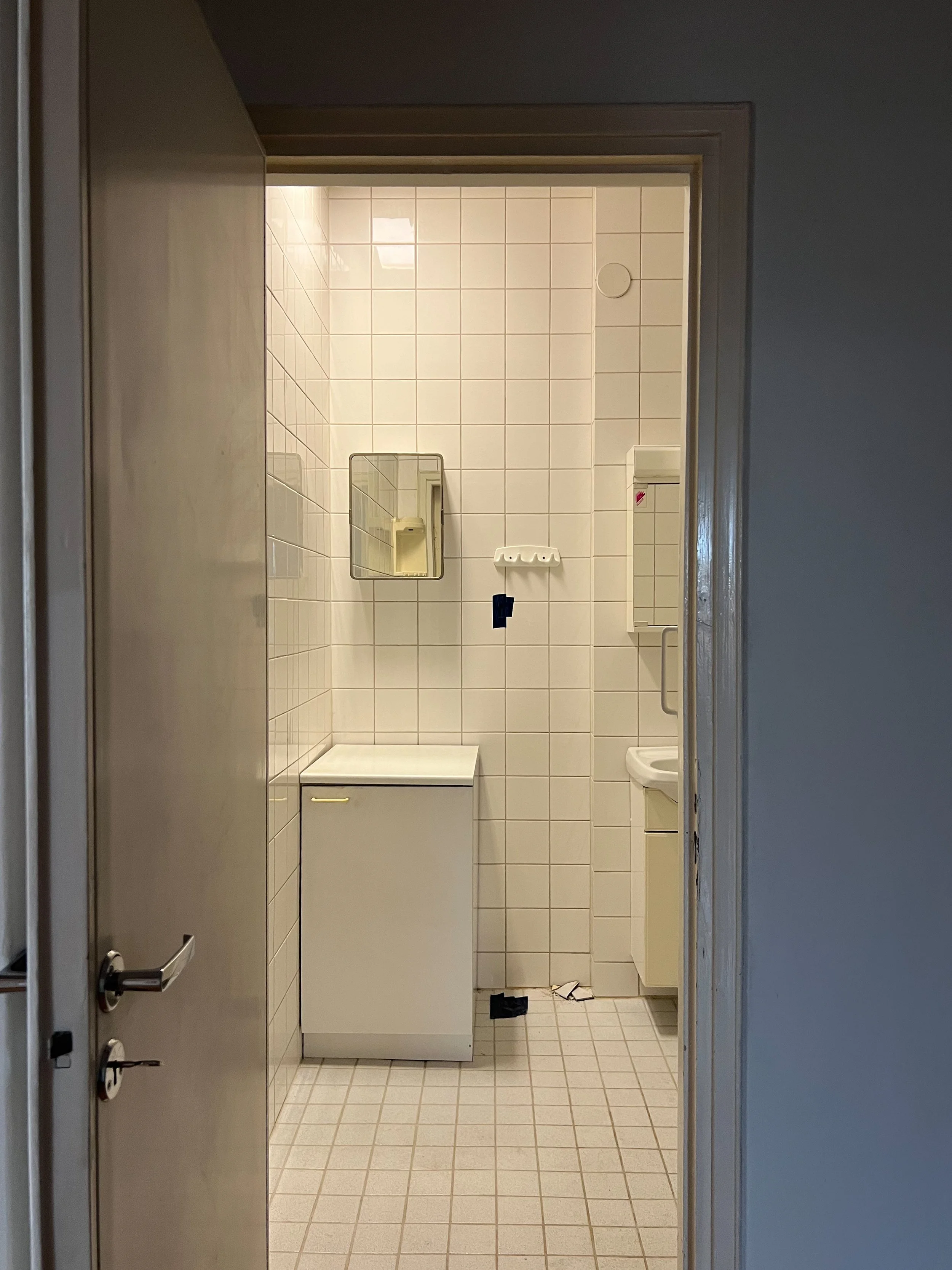 Ennen remonttia kylpyhuone oli periaatteessa kunnossa, mutta vuosikymmeniä vanha, karu ja sieluton kokonaisuus. Valkoiset laatat ja kelmeä perusvalaistus tekivät tilasta kliinisen ja persoonattoman. Tavoitteena oli luoda kodikas ja kompakti spa-henkinen tila, joka istuu saumattomasti muun kodin sävymaailmaan ja tuntuu miellyttävältä käyttää joka päivä.