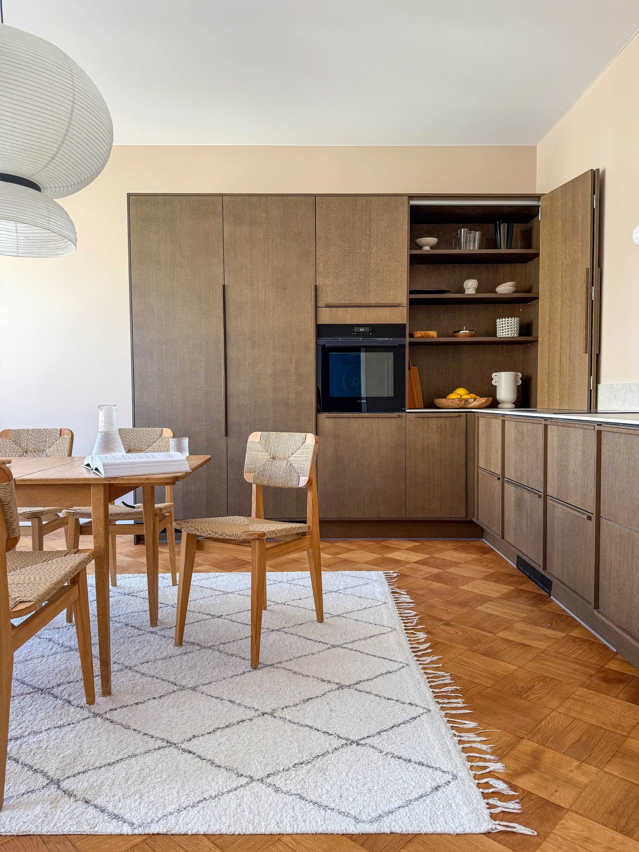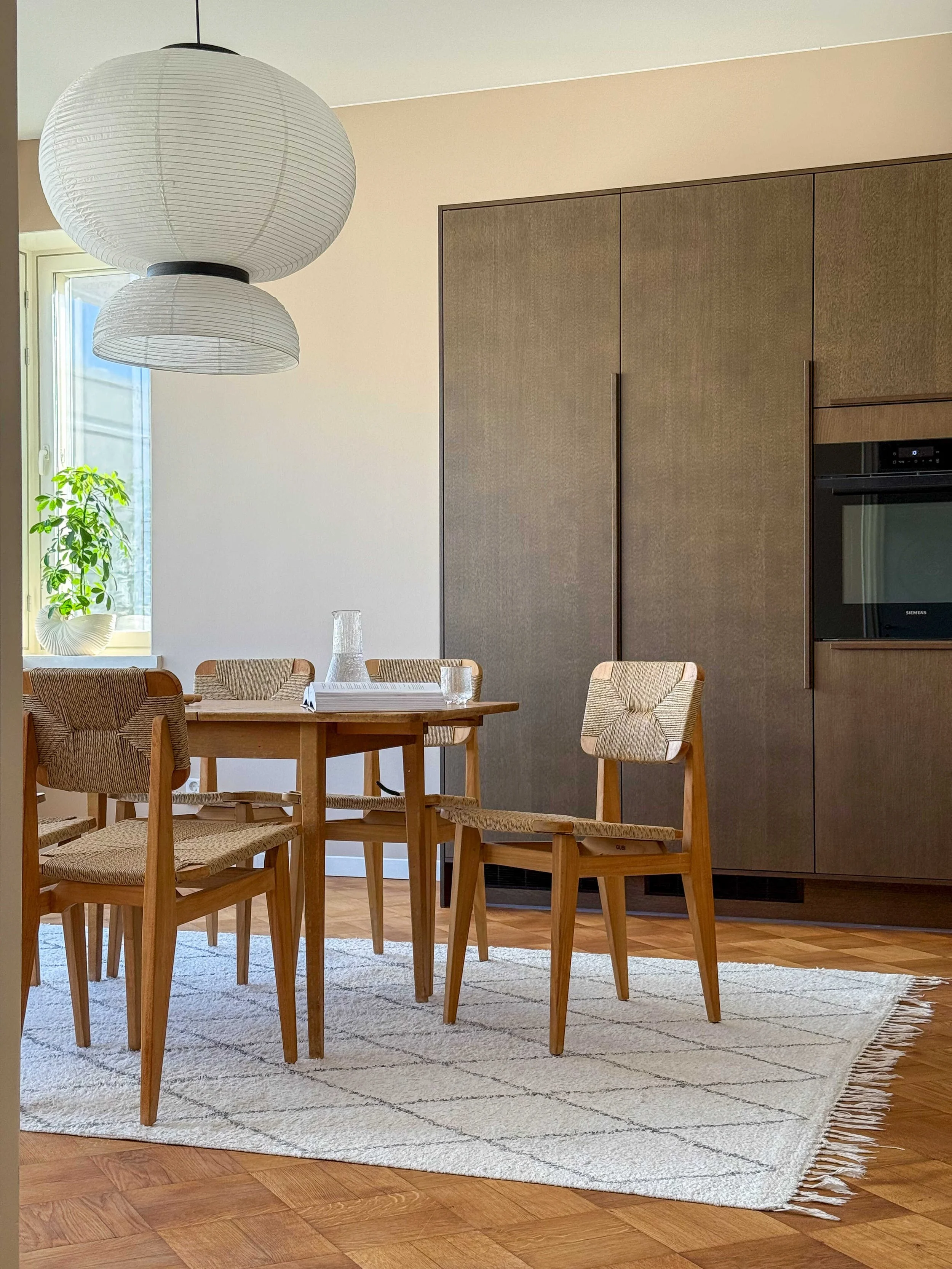 Tämän töölöläiskodin remontti sisälsi paljon muutakin kuin parketin kunnostamisen, ja se on kaikkinensa hyvä esimerkki siitä, kuinka yhdistämällä vanhaa ja uutta, olemassa olevan kunnostamista ja uudistuotantoa, saadaan luotua kokonaisuus, jossa säilyy kodin alkuperäinen luonne, mutta sen toiminnallisuudet ja käyttäjäkokemus tuodaan tähän päivään.